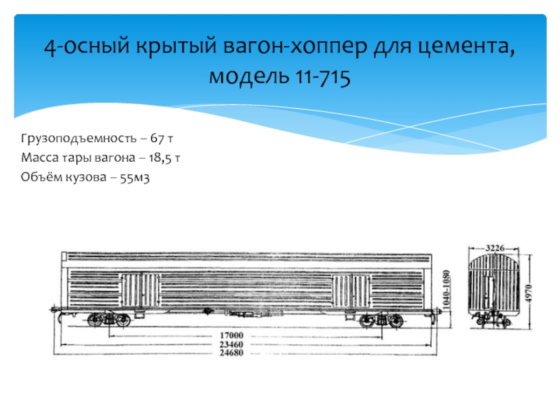 4-осный крытый вагон-хоппер для цемента, модель 11-715