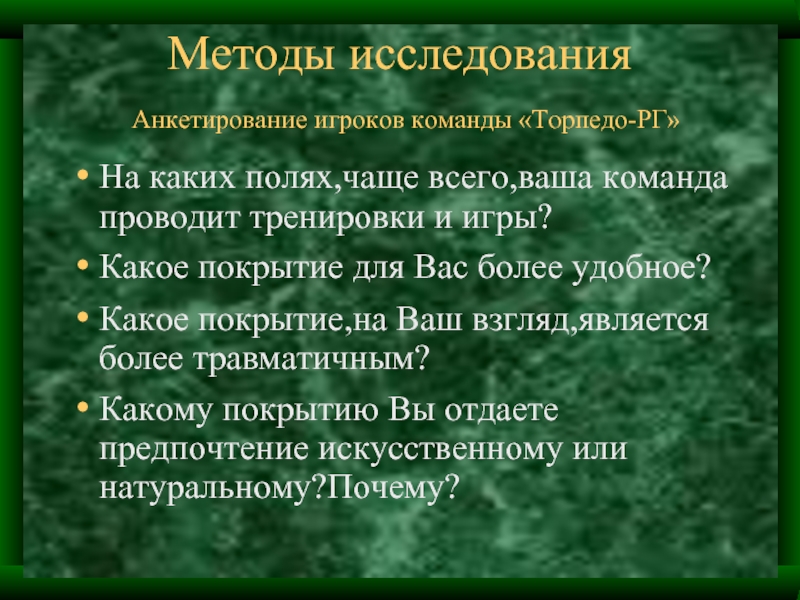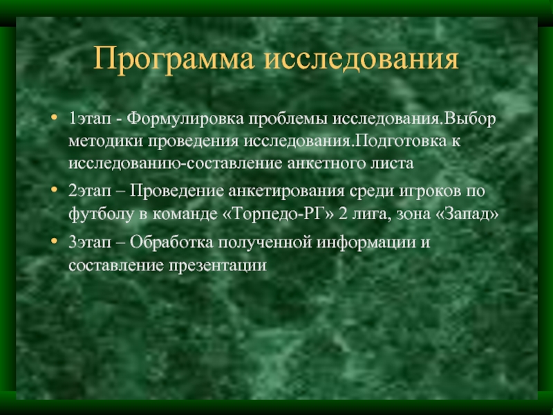2этап – Проведение анкетирования среди игроков по футболу в команде «Торпедо-РГ» 2 лига, зона «Запад»