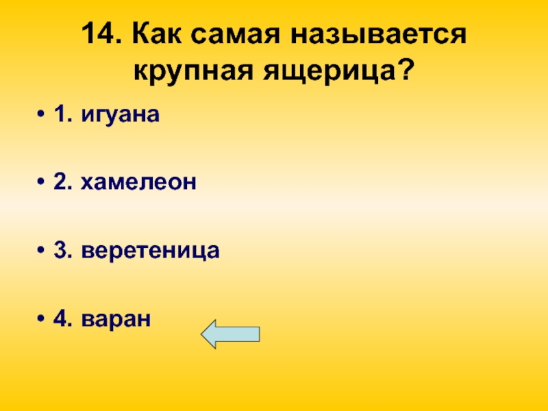 Слайд 5014. Как самая называется крупная ящерица?