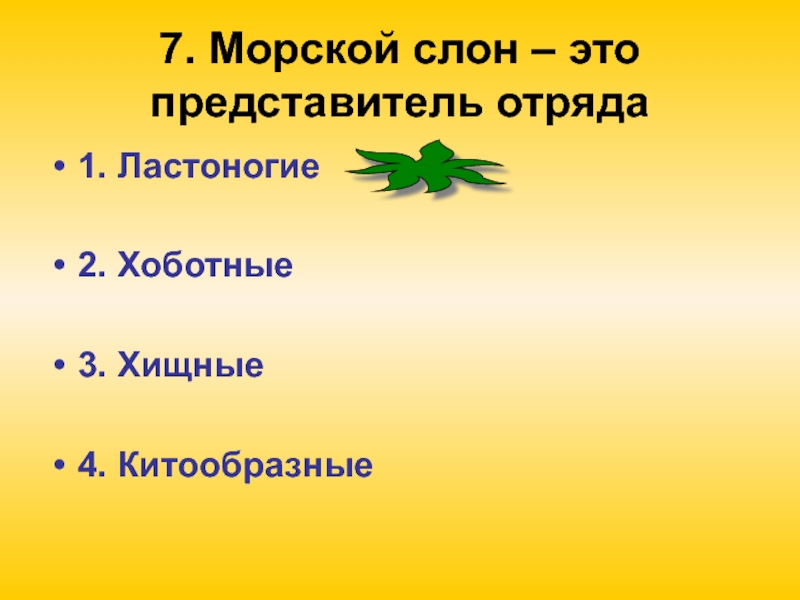 Слайд 97. Морской слон – это представитель отряда