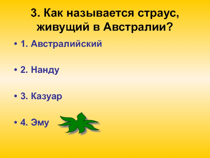 Слайд 53. Как называется страус, живущий в Австралии?