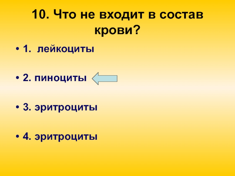 Слайд 4610. Что не входит в состав крови?