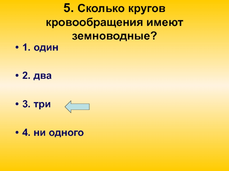 Слайд 415. Сколько кругов кровообращения имеют земноводные?