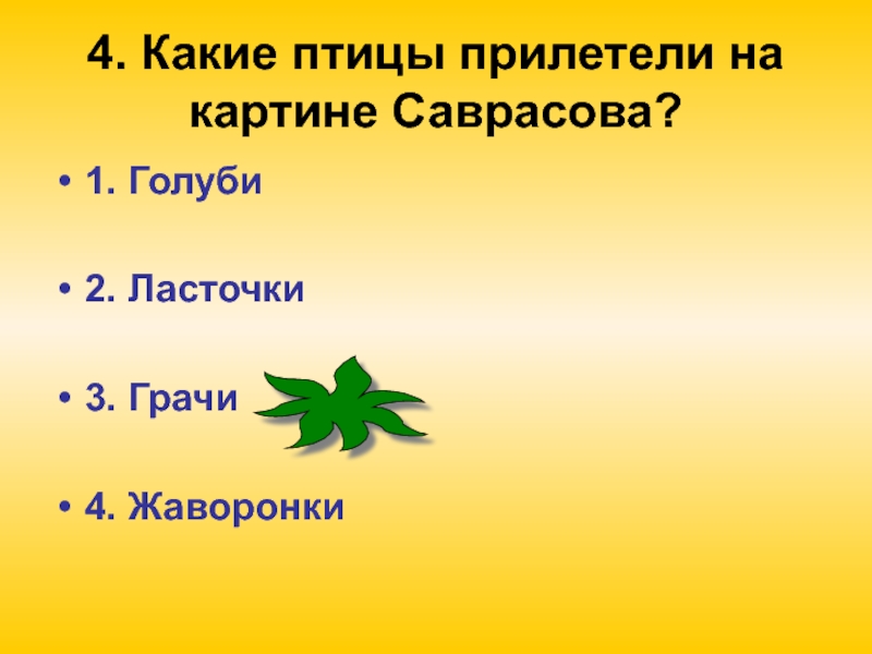 Слайд 64. Какие птицы прилетели на картине Саврасова?