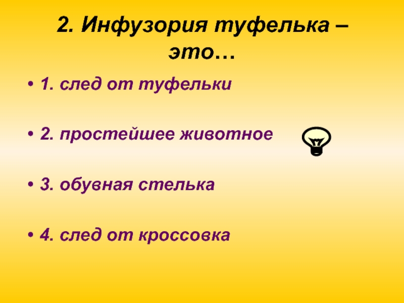 Слайд 212. Инфузория туфелька – это…
