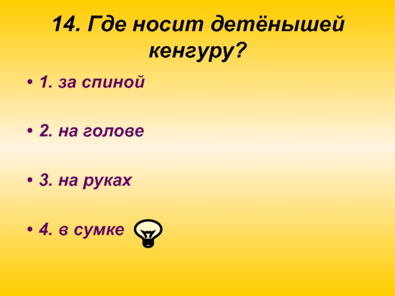 Слайд 3314. Где носит детёнышей кенгуру?