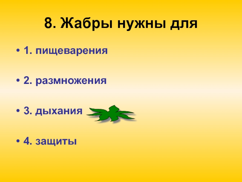 Слайд 108. Жабры нужны для