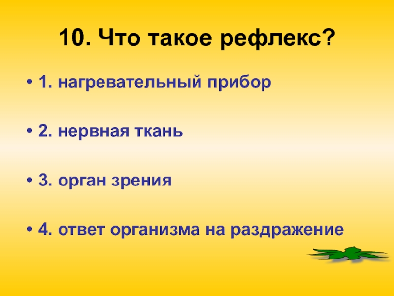 Слайд 1210. Что такое рефлекс?