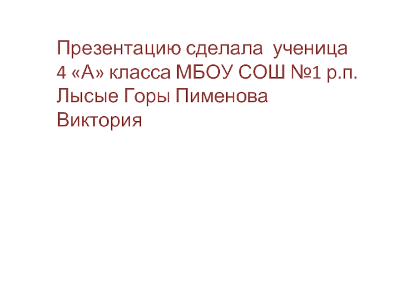 Слайд 6Презентацию сделала ученица 4 «А» класса МБОУ СОШ №1 р.п. Лысые