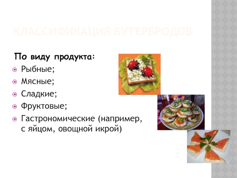 Слайд 6КЛАССИФИКАЦИЯ БУТЕРБРОДОВ