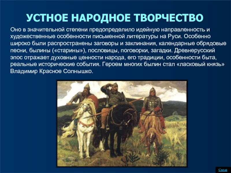 УСТНОЕ НАРОДНОЕ ТВОРЧЕСТВО
