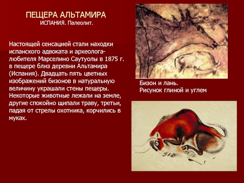 Памятники первобытной культуры, сохранившиеся до наших дней, представлены главным образом произведениями изобразительного искусства.