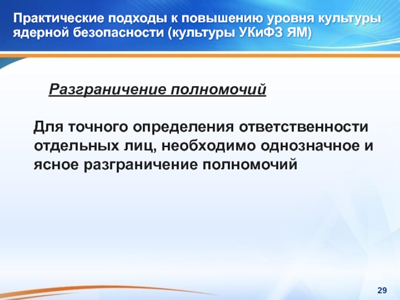 Слайд 29Практические подходы к повышению уровня культуры ядерной безопасности (культуры УКиФЗ ЯМ)