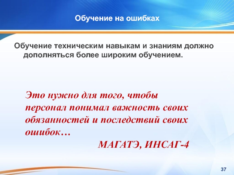 Слайд 37Обучение техническим навыкам и знаниям должно дополняться более широким обучением.