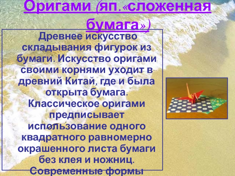 Слайд 11Оригами (яп.«сложенная бумага»)