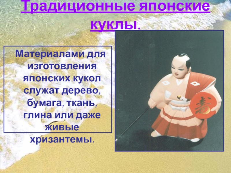 Материалами для изготовления японских кукол служат дерево, бумага,