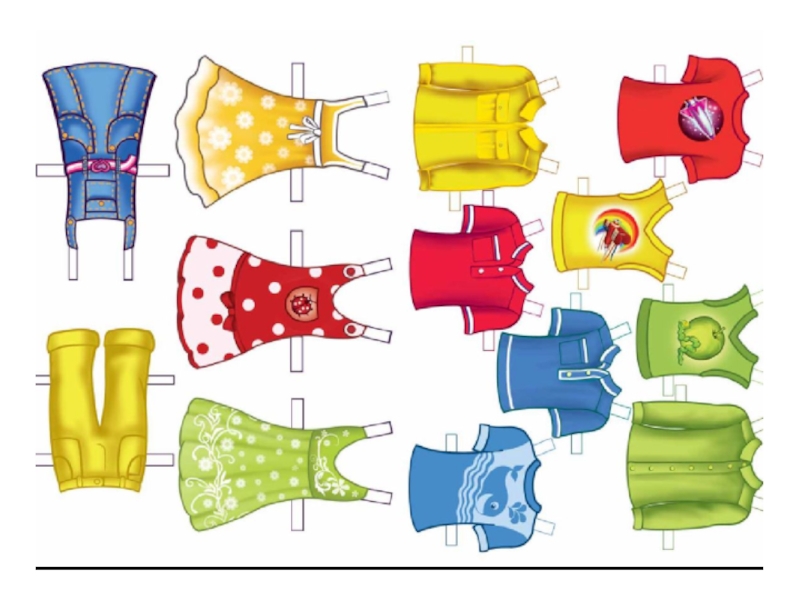 Цель. Закрепить знания о предметах одежды. Упражнять в определении величины. цвета одежды.
