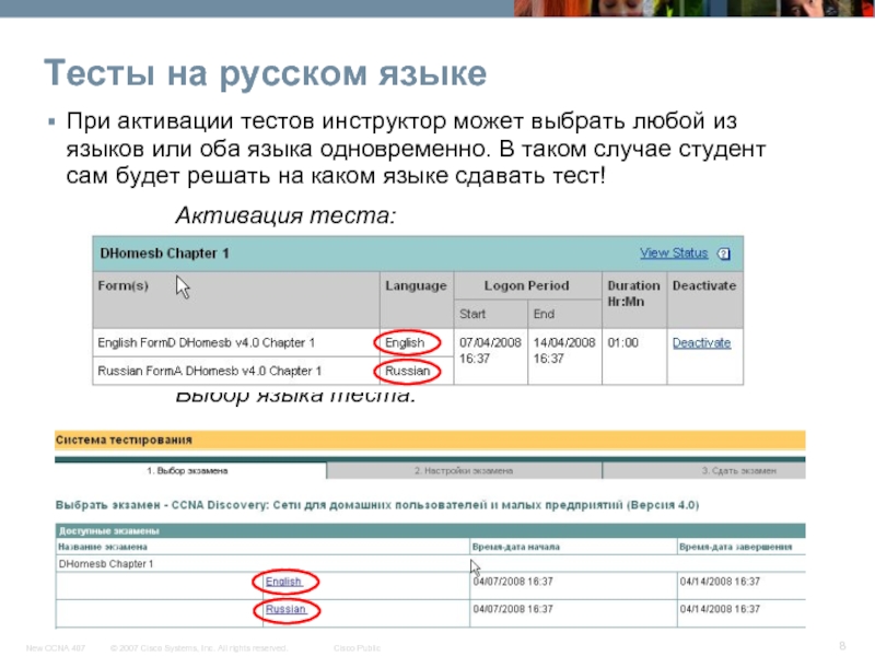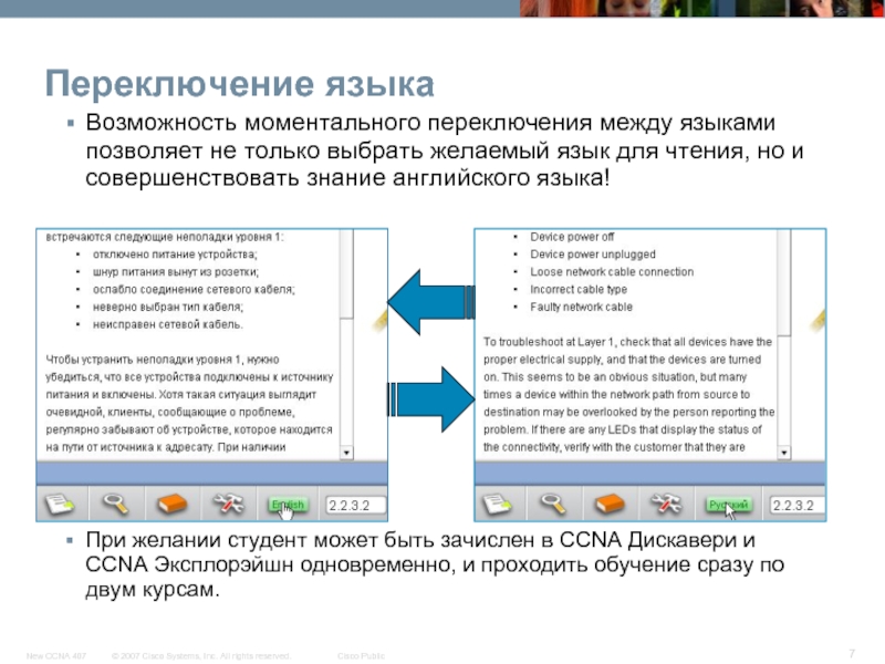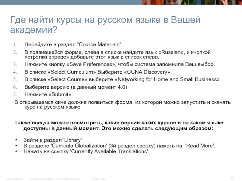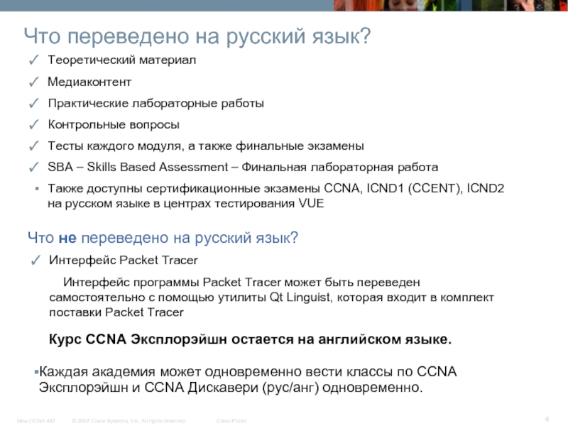 Курс CCNA Эксплорэйшн остается на английском языке.