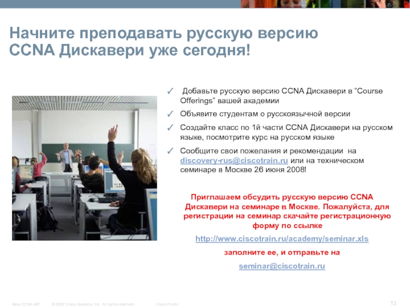 Каждая академия может одновременно вести классы по CCNA Эксплорэйшн и CCNA Дискавери (рус/анг) одновременно.