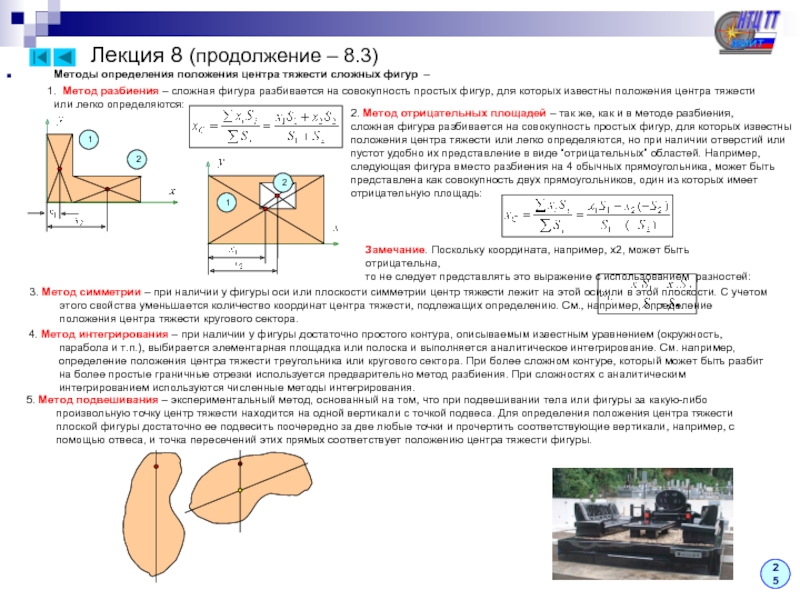 1. Линии действия сил тяготения, приложенные к отдельным частицам тела, параллельны (рассматриваемые тела имеют размеры много меньшие радиуса Земли и углом между линиями действия сил тяготения частиц тел можно пренебречь);