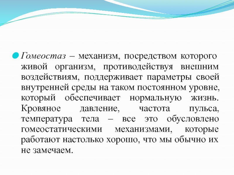 Гомеостаз – механизм, посредством которого живой организм, противодействуя внешним воздействиям, поддерживает