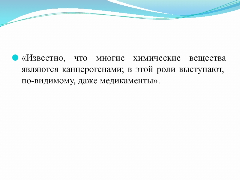 «Известно, что многие химические вещества являются канцерогенами; в этой роли выступают,