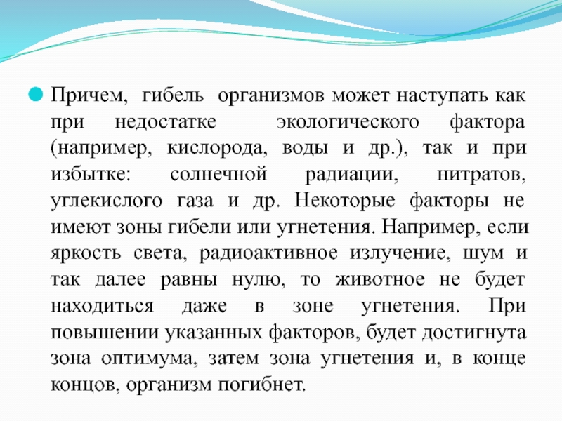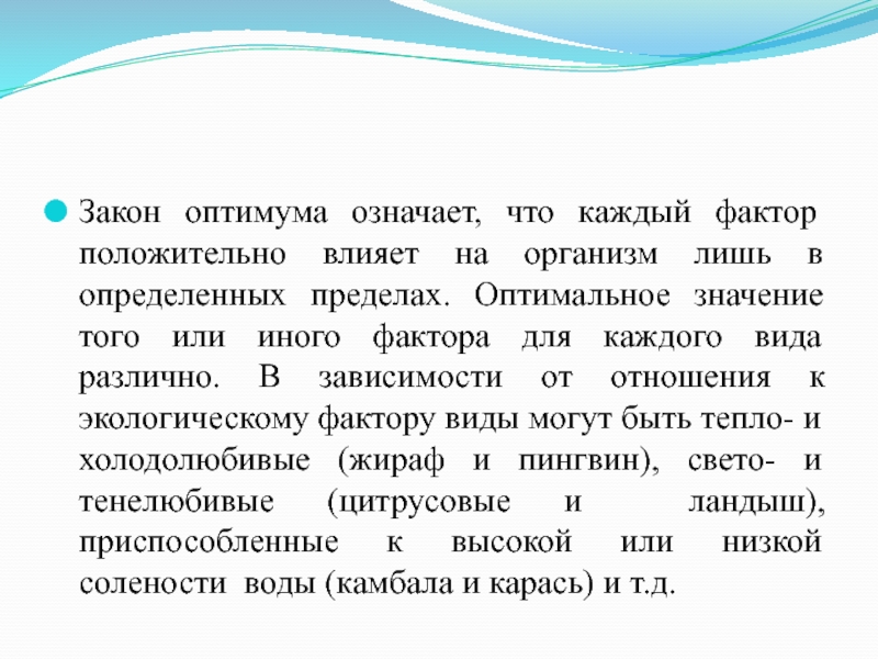 Закон оптимума означает, что каждый фактор положительно влияет на организм лишь