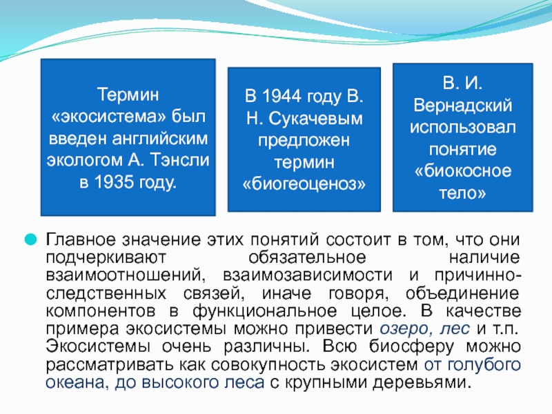 В 1944 году В. Н. Сукачевым предложен термин «биогеоценоз»