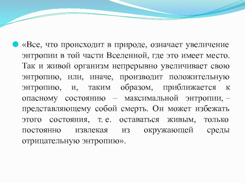 Слайд 28«Все, что происходит в природе, означает увеличение энтропии в той части