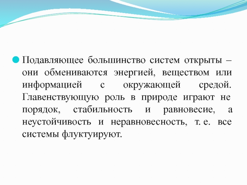 Подавляющее большинство систем открыты – они обмениваются энергией, веществом или информацией