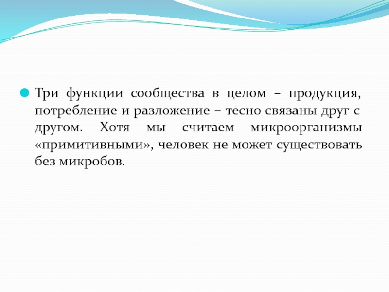 Три функции сообщества в целом – продукция, потребление и разложение –