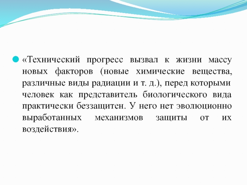 «Технический прогресс вызвал к жизни массу новых факторов (новые химические вещества,