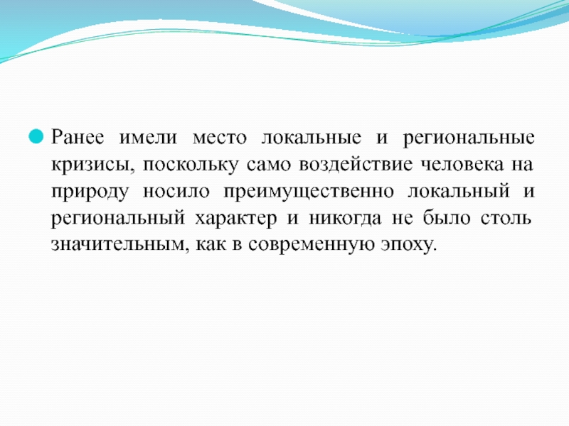 Ранее имели место локальные и региональные кризисы, поскольку само воздействие человека