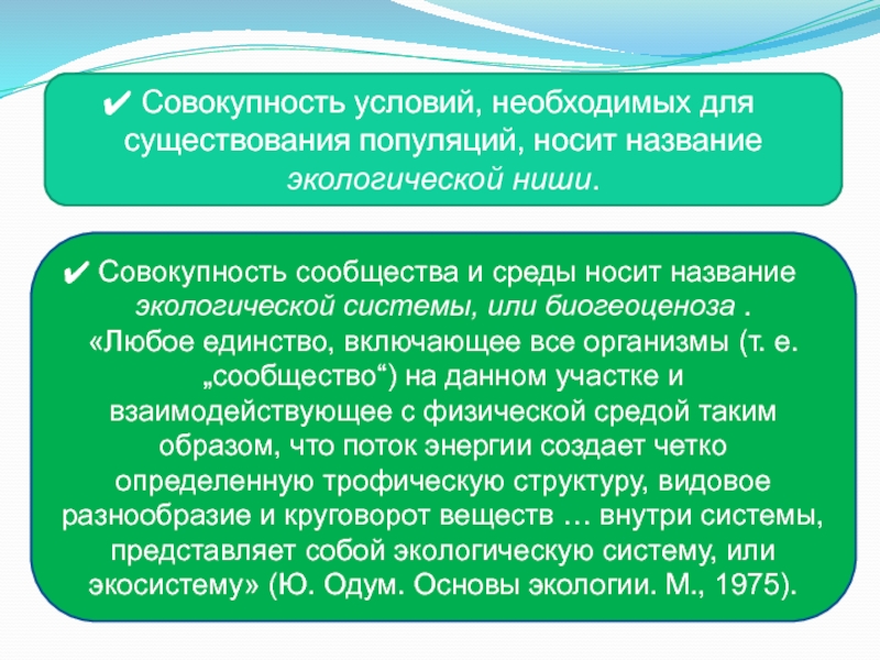 Совокупность условий, необходимых для существования популяций, носит название экологической ниши.