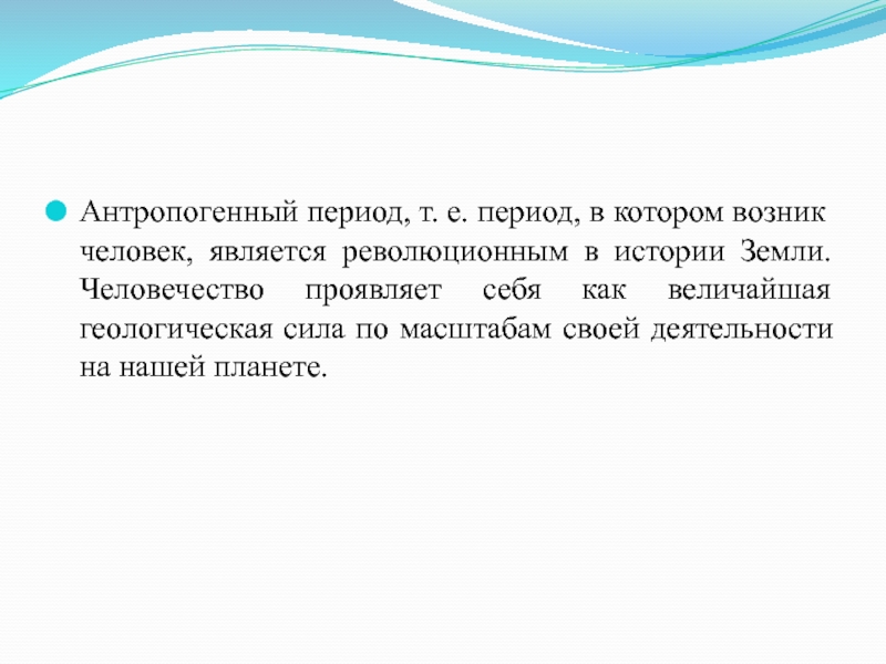 Антропогенный период, т. е. период, в котором возник человек, является революционным в