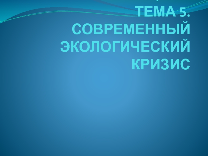ТЕМА 5. СОВРЕМЕННЫЙ ЭКОЛОГИЧЕСКИЙ КРИЗИС