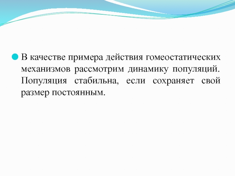 В качестве примера действия гомеостатических механизмов рассмотрим динамику популяций. Популяция стабильна,