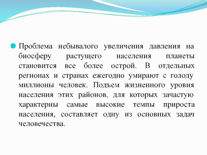 Проблема небывалого увеличения давления на биосферу растущего населения планеты становится все