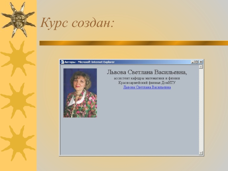 Слайд 2Курс создан: