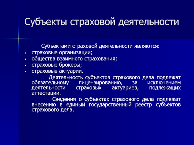 Слайд 21Лицензирование деятельности субъектов страхового дела