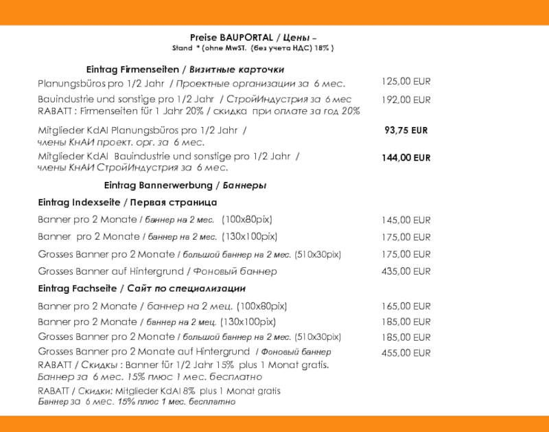 Preise BAUPORTAL / Цены –