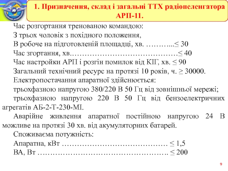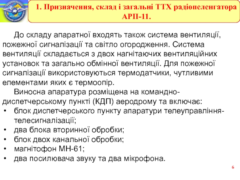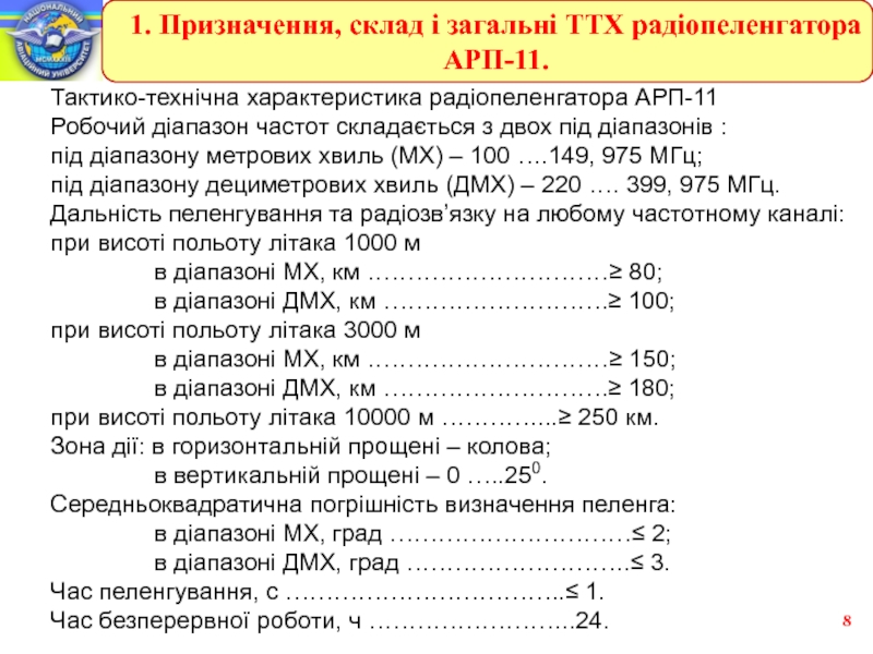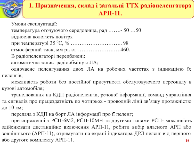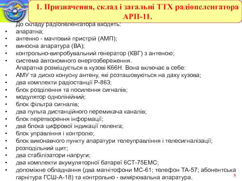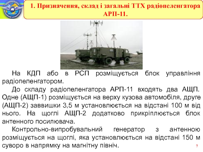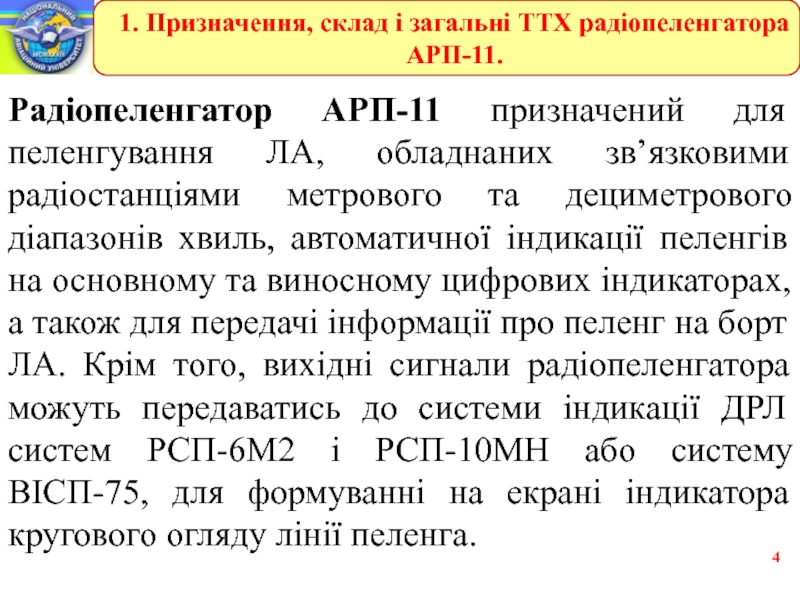 1. Призначення, склад і загальні ТТХ радіопеленгатора АРП-11.