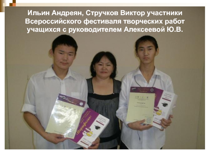 Слайд 22Ильин Андреян, Стручков Виктор участники Всероссийского фестиваля творческих работ учащихся с