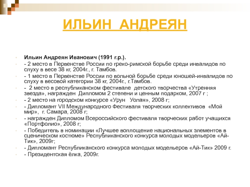 Слайд 21Ильин Андреян - дипломант Республиканского конкурса