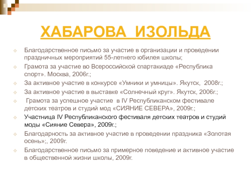 Слайд 13ХАБАРОВА ИЗОЛЬДА