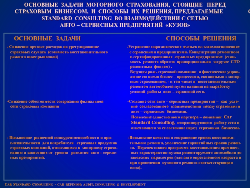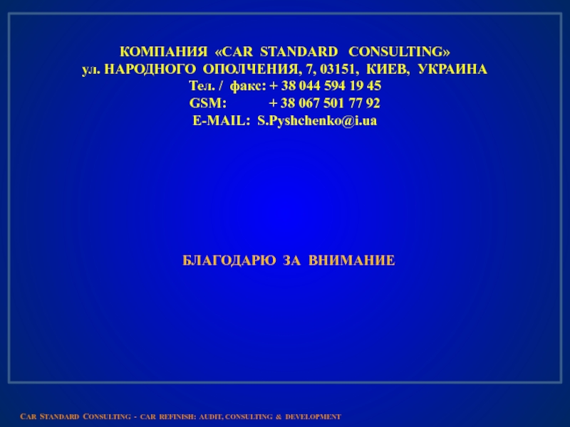 CAR STANDARD CONSULTING - CAR REFINISH: AUDIT, CONSULTING & DEVELOPMENT