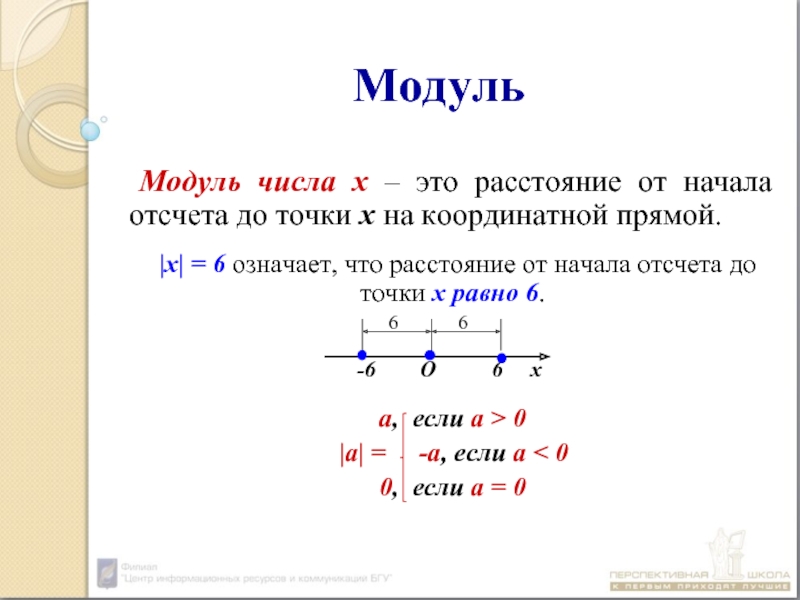 |x| = 6 означает, что расстояние от начала отсчета до точки х равно 6.