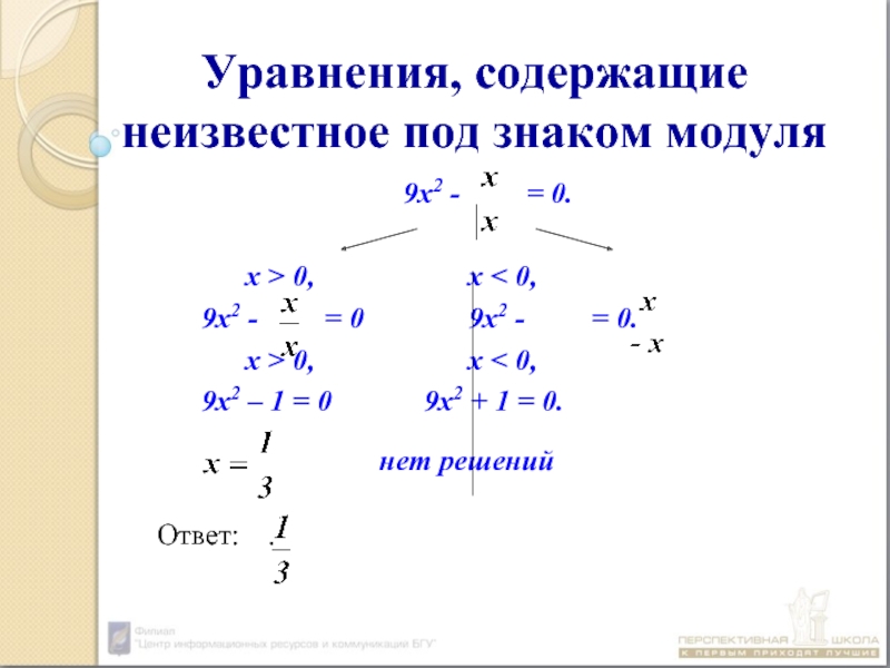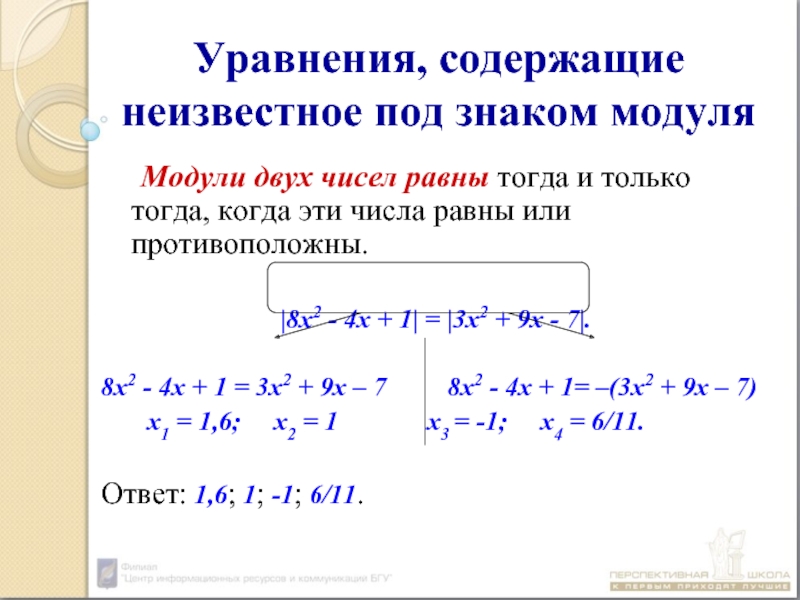 Слайд 31Уравнения, содержащие неизвестное под знаком модуля