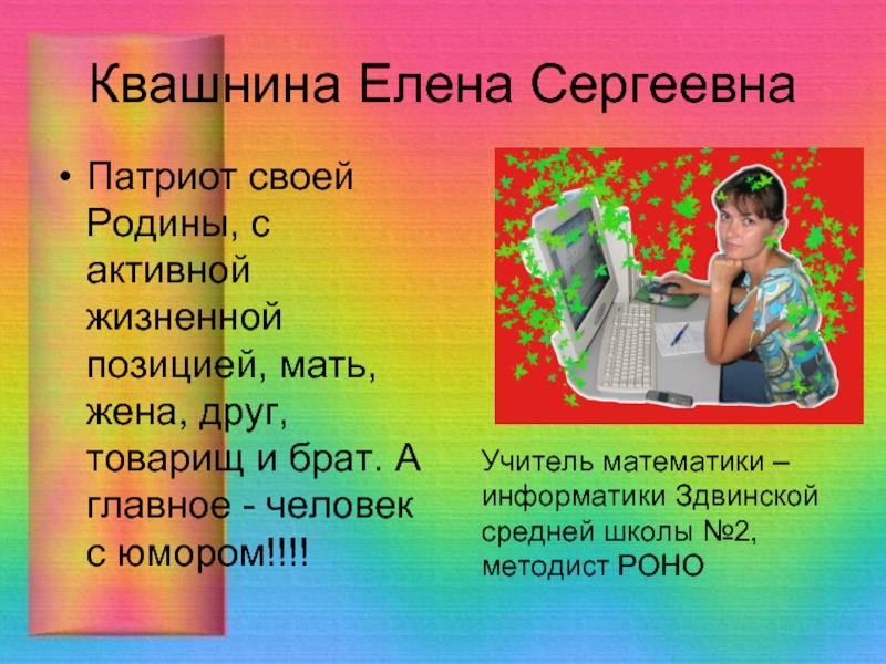 Учитель математики –информатики Здвинской средней школы №2, методист РОНО