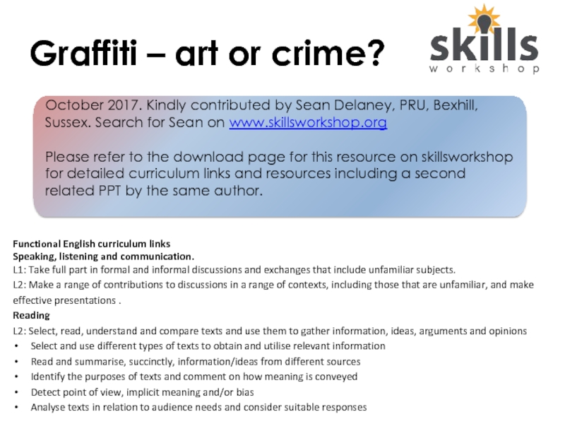 Please refer to the download page for this resource on skillsworkshop for detailed curriculum links and resources including a second related PPT by the same author.